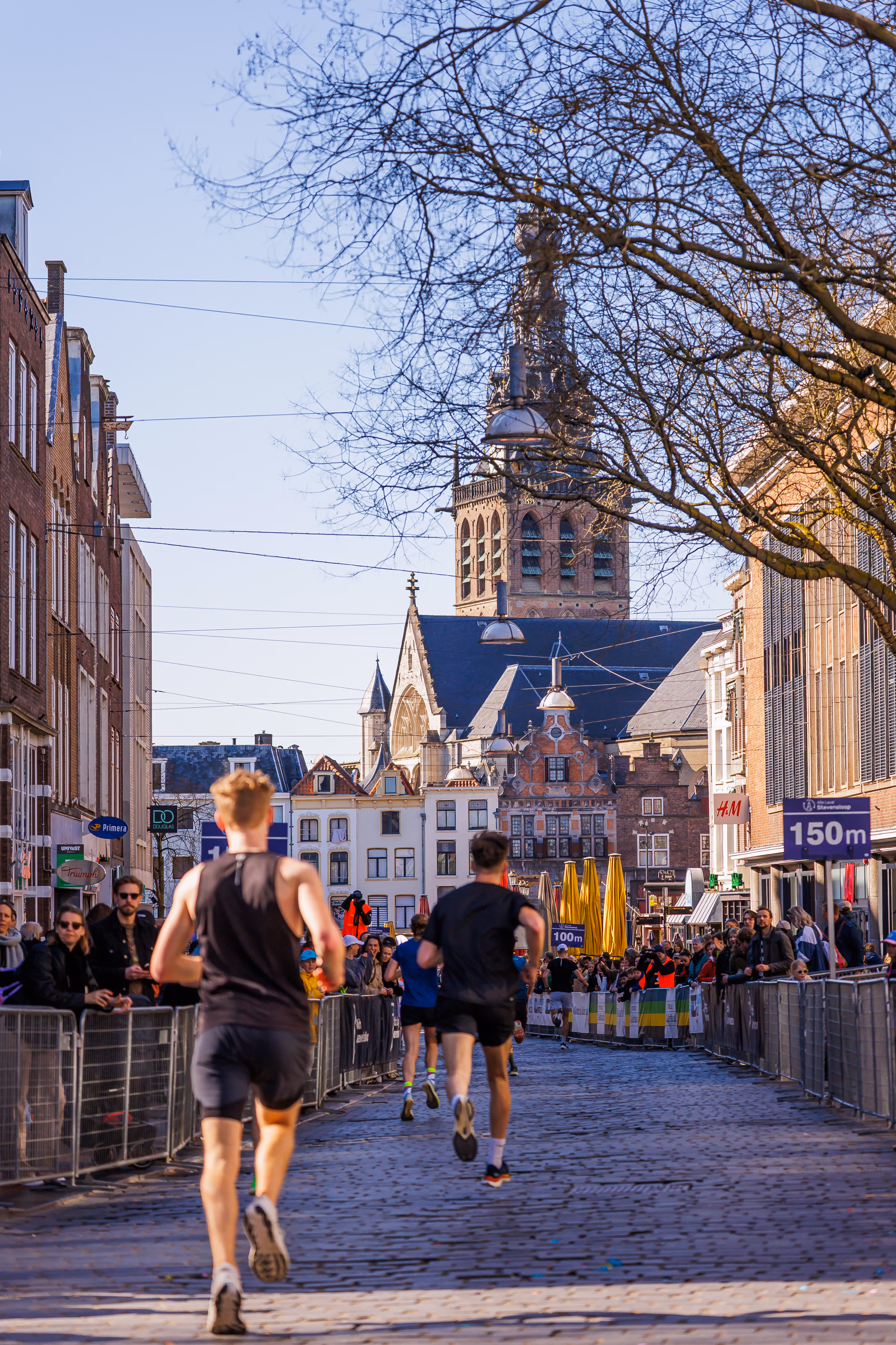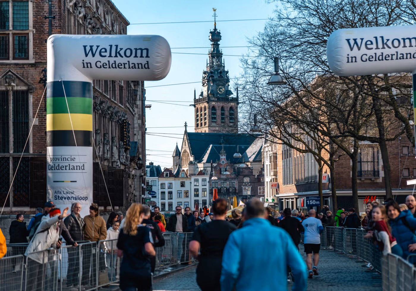 Loop de Alfa Laval Stevensloop in Nijmegen: iconische stadsloop met heuvels, bruggen en finish op de Stevenskerk — afstanden voor elk niveau.