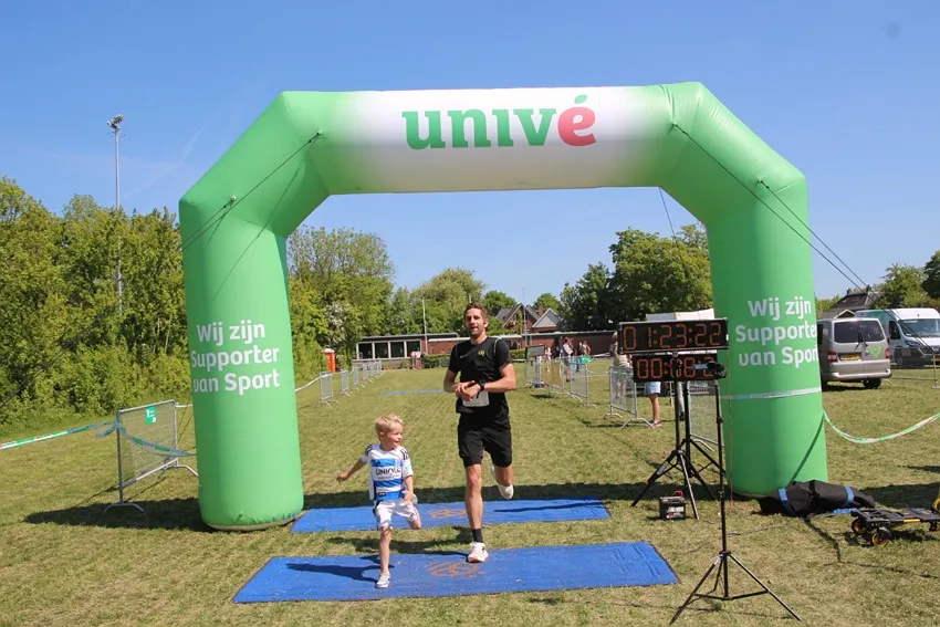 Na de finish ontvangen de kinderen een medaille en een ijsje, wat de beleving extra speciaal maakt.